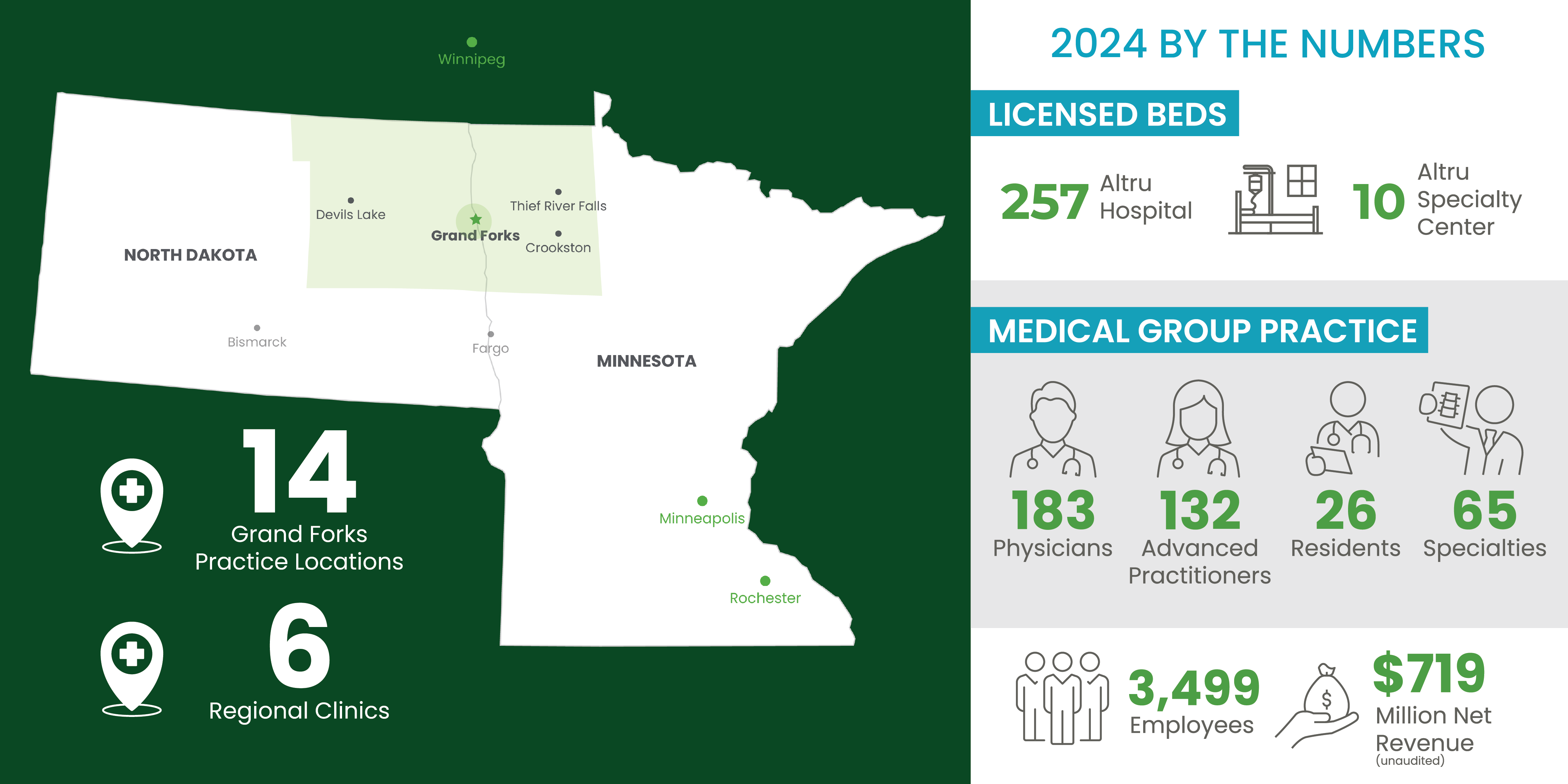 Altru is a team of nearly 3,500 employees and providers, and we’ve been committed to caring for our region for more than 130 years. Serving approximately 230,000 residents in northeast North Dakota and northwest Minnesota, we offer a wide array of services to meet the needs of community members of all ages and levels of health.