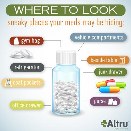 When you have decided it’s time to manage your medicine cabinet, think one step further and consider other areas where unused medications may be hiding.