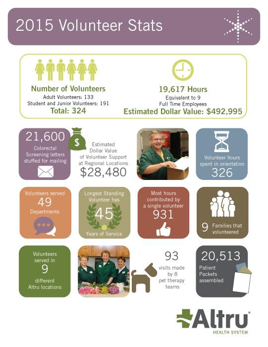 - Volunteers spent 326 hours in orientation to Altru Health System
