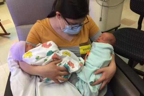 “During this pandemic, access to the NICU and bedside visitation has been limited greatly. As you can imagine, this is very difficult for parents, grandparents, siblings and extended family,” says Amy Zabinski a patient care supervisor in the NICU. “We are able to see our babies as parents, but it has not been an easy experience having to answer multiple questions and be screened every time you want to see your little ones,” says Brittany. “It has also been a challenge to figure out ways other family members, including the twins’ big brother, would be able to see them. We have also been nervous about bringing any unknown exposures into the twins.”