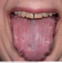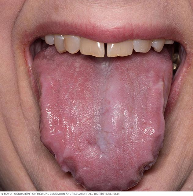 - An enlarged tongue, which sometimes looks rippled around its edge.