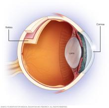- The lens, a clear structure inside the eye that changes shape to help the eye focus on near objects