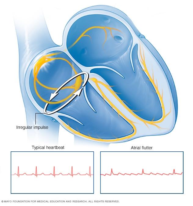 You may have tests to check your heart and to look for health conditions that can cause an irregular heartbeat. Tests for atrial flutter may include: