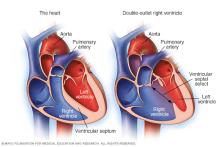 Double-outlet right ventricle is a heart condition present at birth. That means it's a congenital heart defect. In this condition, the lower right heart chamber has two openings for blood to exit the heart instead of one. Some of the blood from the lower right heart chamber goes to the body instead of the lungs.