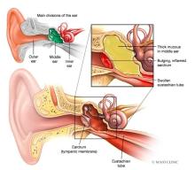 An ear infection, also known as acute otitis media, is an infection of the air-filled space behind the eardrum, known as the middle ear. Children are more likely than adults to get ear infections.