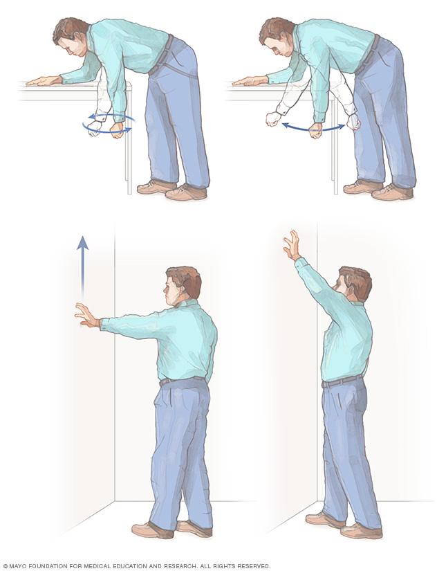 Continue to use the shoulder and arm as much as possible given your pain and range-of-motion limits. Applying heat or cold to your shoulder can help relieve pain.