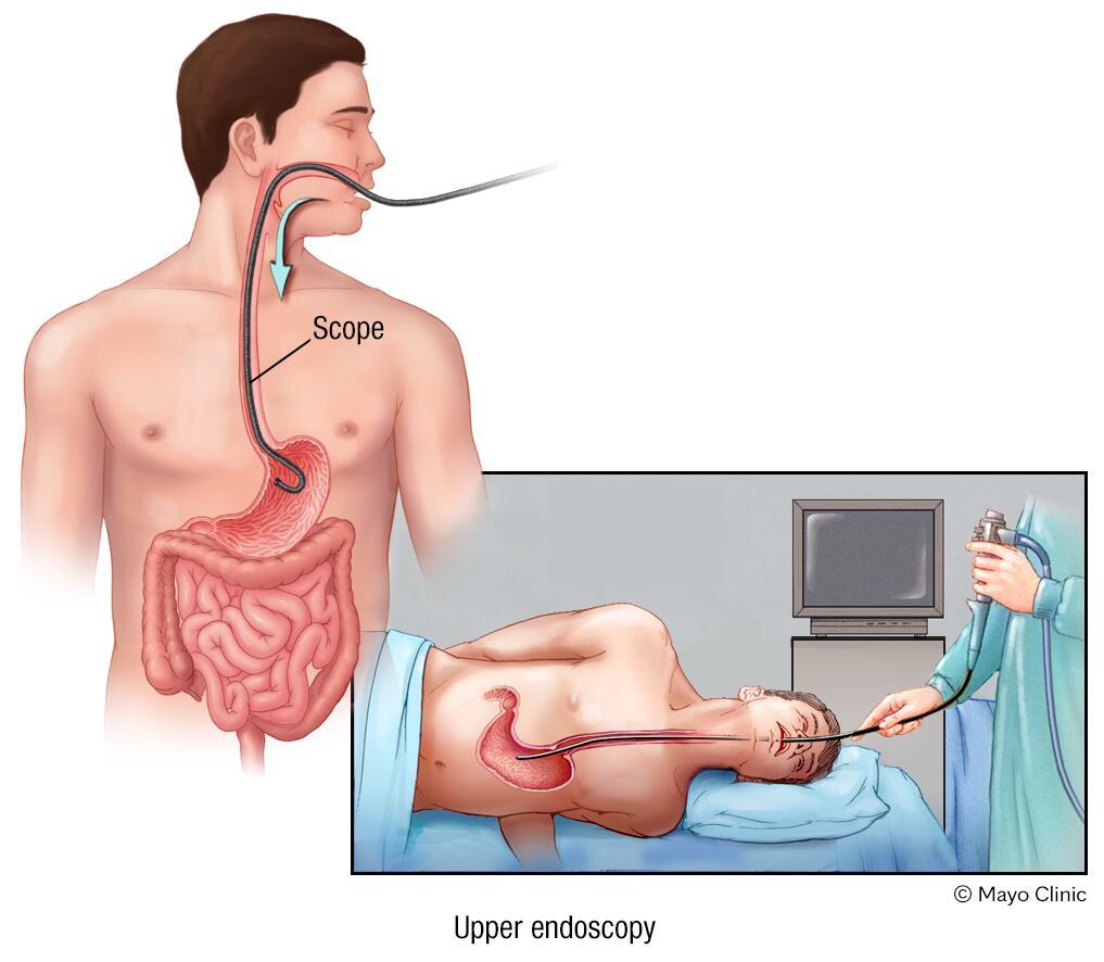 - Endoscopy, to view the esophagus with a tiny camera to check for irregularities. A tissue sample, called a biopsy, may be taken for analysis.