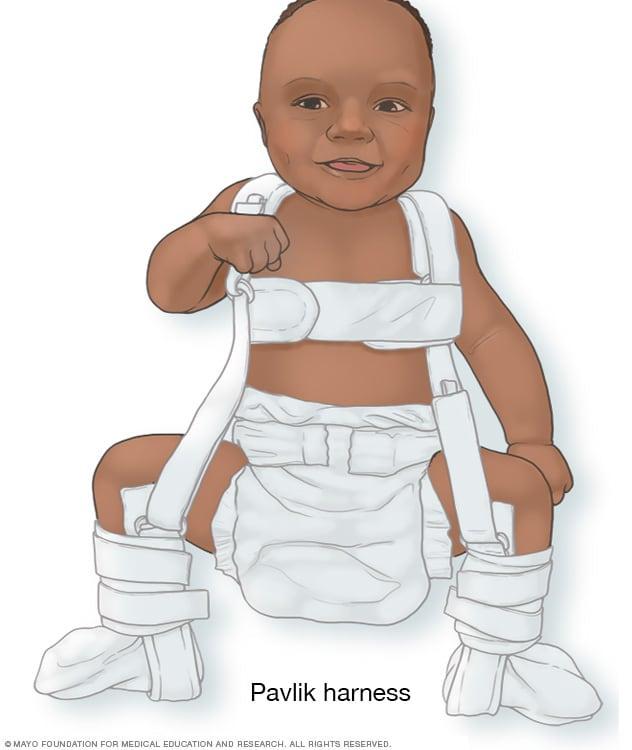 Hip dysplasia treatment depends on the age of the affected person and the extent of the hip damage. Infants are usually treated with a soft brace, such as a Pavlik harness, that holds the ball portion of the joint firmly in its socket for several months. This helps the socket mold to the shape of the ball.
