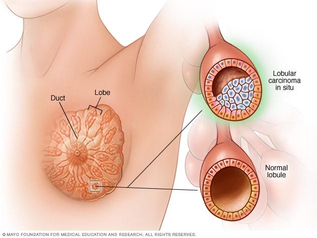 Lobular carcinoma in situ increases the risk of breast cancer in both breasts. If you're diagnosed with lobular carcinoma in situ, you may need increased breast cancer screening. You also may want to consider treatments to reduce your risk of developing invasive breast cancer.