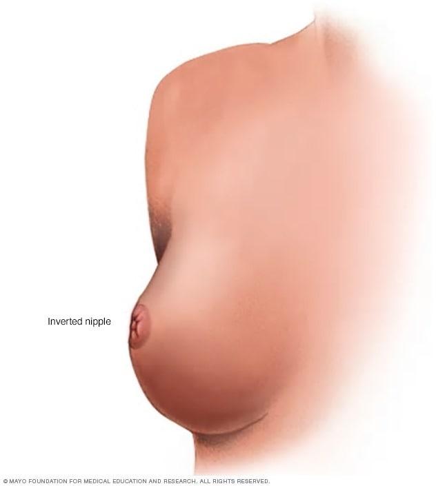 - A nipple that's turned inward, also called inverted.
