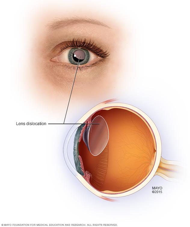 - Lens dislocation. The focusing lens within your eye can move out of place if its supporting structures weaken. The medical term for this problem is ectopia lentis, and it occurs in more than half the people who have Marfan syndrome.