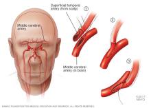 Direct revascularization procedures. In direct revascularization surgery, surgeons stitch the scalp artery directly to a brain artery. This also is known as superficial temporal artery to middle cerebral artery bypass surgery. This procedure increases blood flow to your brain immediately.