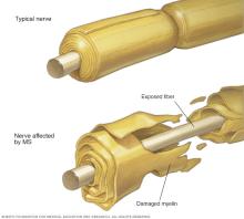 In MS, the immune system attacks the protective sheath that covers nerve fibers, known as myelin. This interrupts communication between the brain and the rest of the body. Eventually, the disease can cause permanent damage of the nerve fibers.