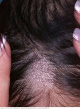 - One or more round, scaly or inflamed patches where the hair has broken off at or near the scalp