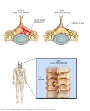 - Laminotomy. This surgery removes only part of the lamina. The surgeon carves a hole just big enough to relieve pressure in a specific spot.