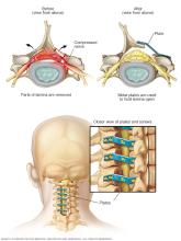 - Laminoplasty. This surgery is done only on spinal bones in the neck. It makes the space within the spinal canal bigger by creating a hinge on the lamina. Metal hardware bridges the gap in the opened section of the spine.