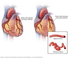 - Coronary angiogram. This test looks inside the heart arteries. A doctor places a long, thin flexible tube called a catheter into a blood vessel, usually in the groin or wrist. It's guided to the heart. Dye flows through the tube to the arteries. The dye helps the arteries show up more clearly on images and video. A coronary angiogram can diagnose SCAD. It also can show any twisted arteries.