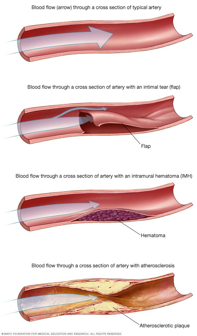 In some people with SCAD, the inner and outer layers of the artery may split. Blood can collect between these layers. Pressure from the pooled blood can make SCAD worse.