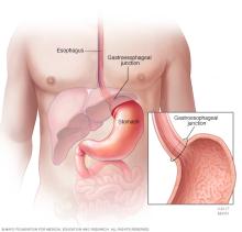 In the United States, stomach cancer is more likely to start by the gastroesophageal junction. This is the part where the long tube that carries food you swallow meets the stomach. The tube that carries food to the stomach is called the esophagus.