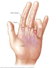 - Tenderness or a bump in the palm at the base of the affected finger.
