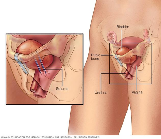 - Bladder neck suspension. This procedure is designed to provide support to your urethra and bladder neck — an area of thickened muscle where the bladder connects to the urethra. It involves an abdominal incision, so it's done during general or spinal anesthesia.