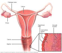 During the exam, the healthcare professional carefully inspects the outer genitals. The health professional inserts two fingers of one hand into the vagina. At the same time, that person's other hand presses on the belly to feel the uterus and ovaries. A device called a speculum is inserted into the vagina. The device opens the vaginal canal so the health professional can look for changes in the vagina and cervix. Changes could be signs of cancer or other problems.
