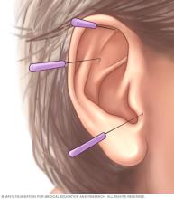 Ear acupuncture involves placing acupuncture needles into specific points around the ear. These points are believed to correspond with specific organs, emotions or sensory feelings.