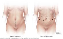 You're given a medicine, called general anesthesia, that keeps you asleep during surgery. Once you're asleep, your surgeon cuts into your belly. There's one large cut for open surgery or several smaller cuts for minimally invasive or robotic surgery.