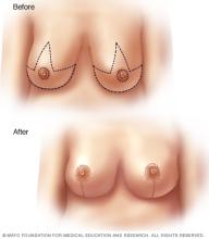 A breast lift can lessen sagging and raise the position of the nipples. The surgery also can lift the darker areas surrounding the nipples, called the areolae. The areolae may be made smaller to keep them balanced with the newly shaped breasts.