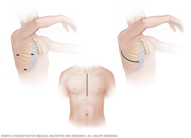 - Thoracoscopic surgery or mini-thoracotomy. A surgeon places long tools through one or more small incisions on the right side of the chest.