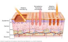 Both ablative and nonablative methods can be done with a fractional laser, which creates microscopic columns of treated tissue. Fractional lasers shorten recovery time and reduce the risk of side effects. You'll likely need more than one treatment session. Use of fractional devices has become the widely preferred method.