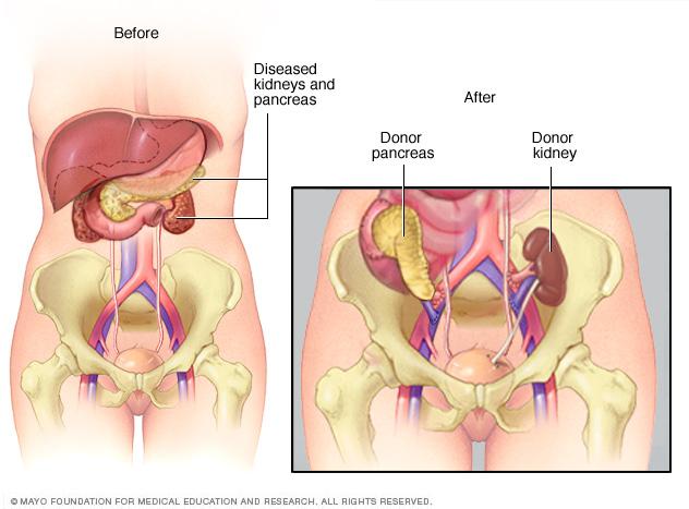 If you also need a kidney transplant, the transplant team will decide whether it's better for you to have the pancreas and kidney transplants at the same time, or to have the kidney transplant first, followed by the pancreas transplant later. The best option for you depends on the severity of your kidney damage, the availability of donors and your preference.