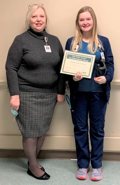 Kaytlin has been a nurse on the 3rd Floor Medical Specialty Unit for 1 ½ years. Her colleagues celebrated her award during a ceremony in early December.